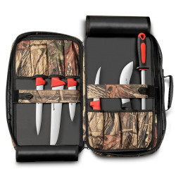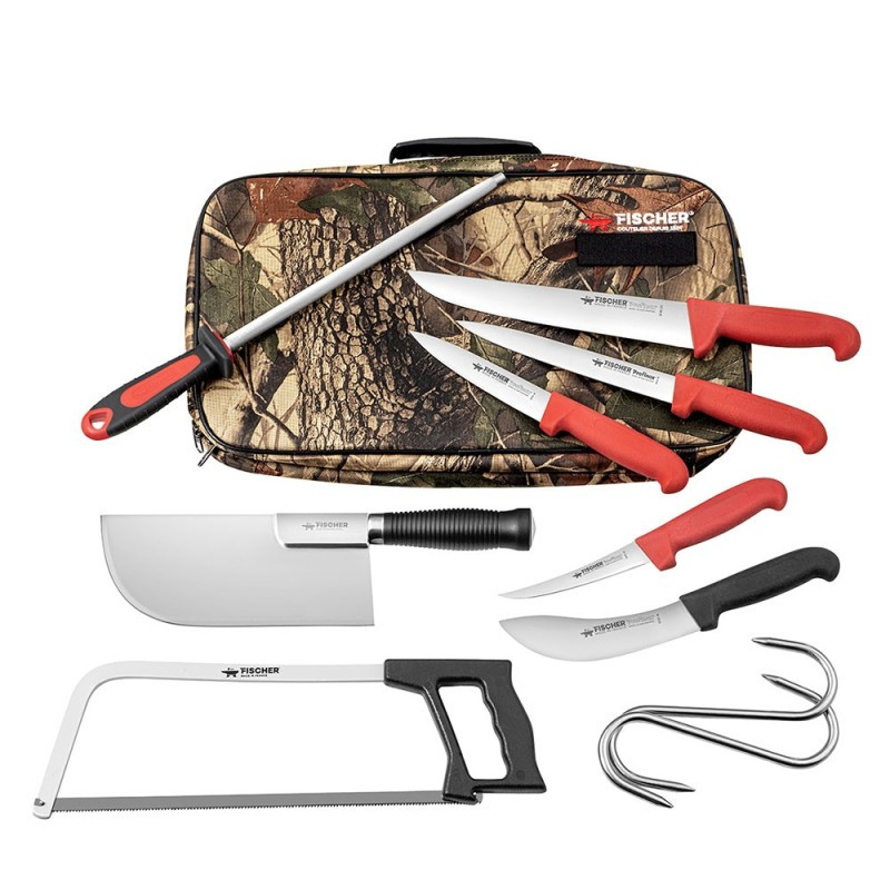 Mallette de couteaux camo Fischer, parfaite pour vos aventures de chasse ! Durable et pratique, elle contient 10 pièces indispensables.