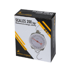 Ce peson dynamométrique est équipé d'une carcasse métallique résistante aux chocs et d'un cadran en plexiglas. Il dispose également d'une graduation en kilos, d'une vis de remise à zéro et de deux crochets de suspension.